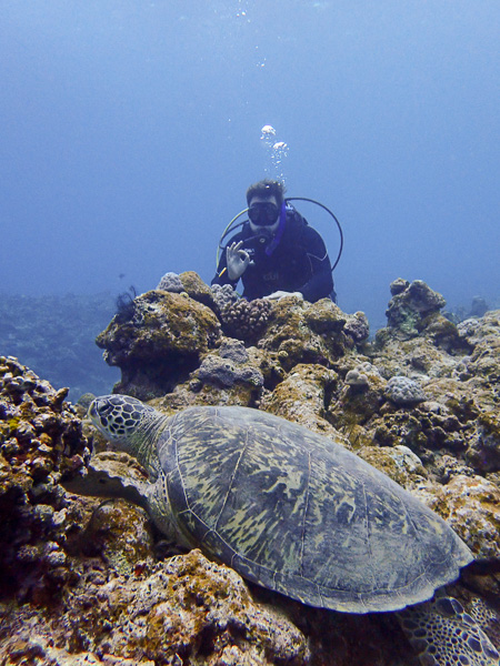 周りに人が多くても少なくても相変わらずのアオウミガメさん🐢