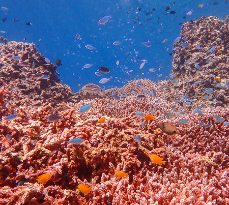 岩の上に群れているキンギョハナダイも綺麗♪