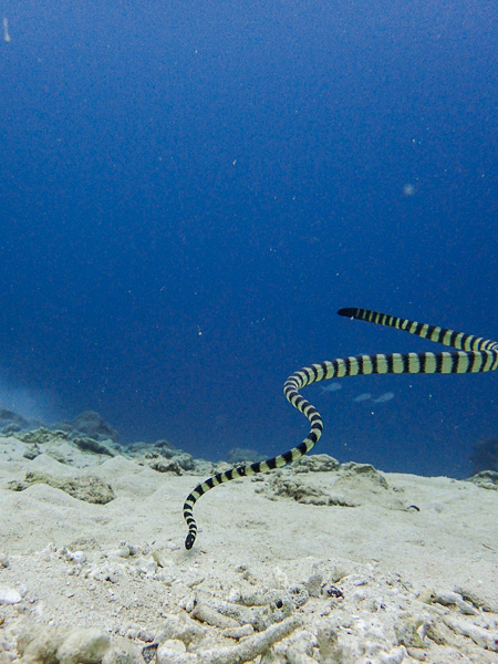 いろいろな種類のウミヘビが見れますが1番キレイだと思うクロガシラウミヘビ🐍