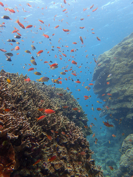 ユビエダサンゴに集まるキンギョハナダイなどの魚達🐠🪸🐠