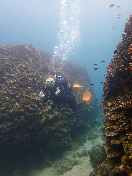 透明度はもう少し上がってもらいたいですがサンゴに集まるたくさんの魚に囲まれて楽しんできましたよ✨
